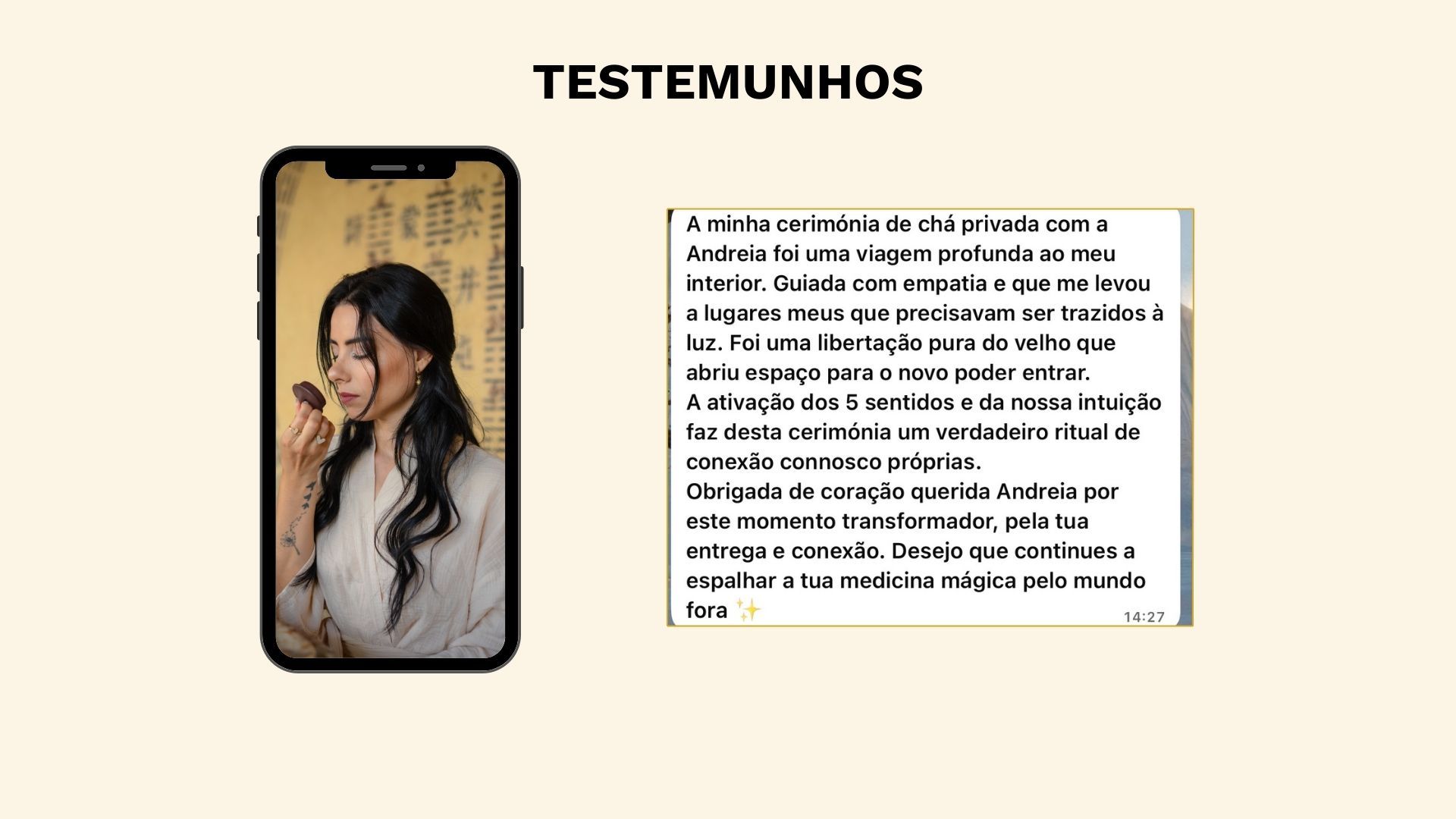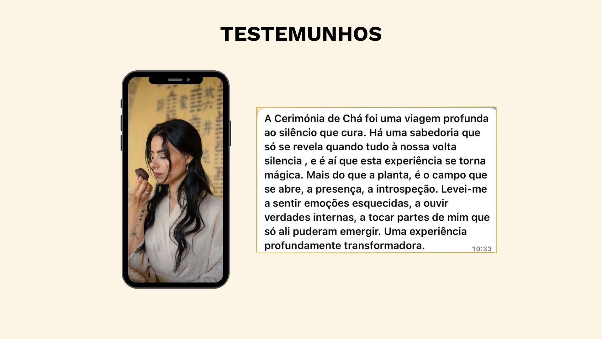 Aquela cerimónia do chá foi o lugar que mais me conectou a mim mesma, que me fez canalizar mensagens de um lugar divino. Eu, que durante anos, viajei por todo o mundo e consagrei poderosas plantas e medicinas da floresta. Do México, ao Peru, do Brasil a tantos outros cantos do mundo. Nunca houve uma que me levasse nesta tão profunda viagem à alma.